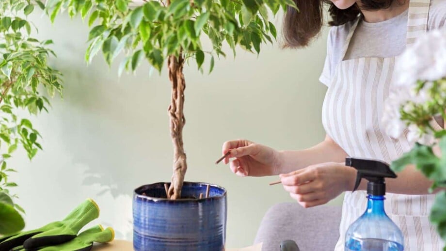 These plants require a lot of fertilizer throughout the growing season because they are heavy feeders. At the beginning of the growing season, feed your ficus slow-release pellets.