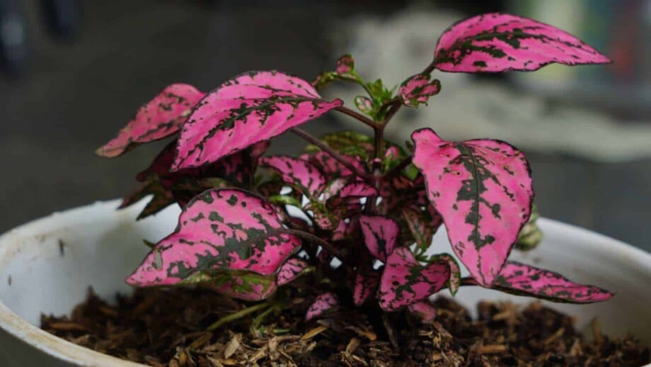 In addition to the traditional white and green leaves, look for varieties with bubblegum pink or watermelon red variegation. Hypoestes phyllostachya is compatible with a variety of color palettes due to its wide range of colors and patterns.