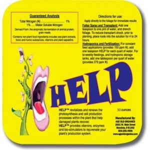 BLOWOUT SALE! Get results… fast! Age Old HELP provides vitamins, enzymes and bio-stimulators to rejuvenate your plant’s production system. Revitalizes and renews the photosynthesis and cell production processes within the plant so damaged plants can recover. Use as a foliar spray to reduce transplant shock and in hydroponic storage tanks.