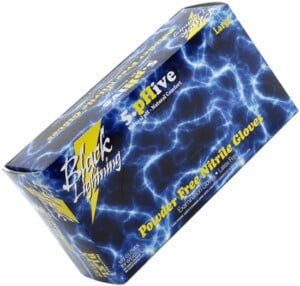 Now with NEW 5.5 pH technology!ย Disposable Black Lightning Nitrile Gloves are made to ensure aย comfortable fit and retain the sensation required for delicate work. The unique designย reduces excess perspiration and providesย excellent barrier protection.