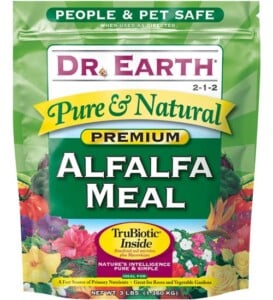 Great for roses and vegetable gardens! Dr. Earth Alfalfa Meal meets the highest standard of fertility needs for ALL flowers, vegetables, trees and shrubs. Roses prefer it because it contains magnesium, which intensifies flower color and improves bud production. Vegetable gardens love it because alfalfaย contains triacontanol, a natural growth stimulant that boosts plant growth and delivers maximum yields.