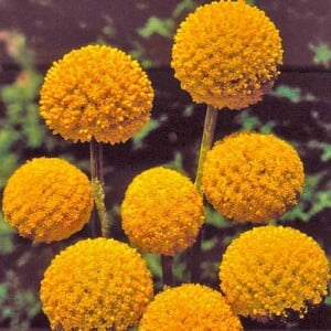 Also known as Billy Button,ย Drumstick flowers (Craspedia globosa) grow 3-feet tall and yield brilliant golden-yellow, 1-inch wide, blossomsย on sturdy stems. Striking blooms last all season long and are popular inย fresh or dried bouquets. (Annual)