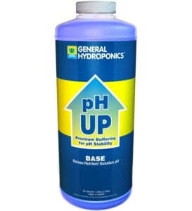 pH Up: This base solution is formulated using potassium hydroxide and potassium carbonate. Add a little at a time when your nutrient pH is too low in order to raise the pH to the proper level.