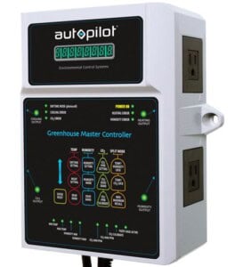 Control CO2, humidity and temperature with great precision with the Autopilot Greenhouse Master Controller (GMC). Connect external devises such as CO2 injectors, dehumidifiers, air conditioners, fans, etc, via four separate power outlets. The GMC features a highly accurate, dual beam CO2 sensor delivered by a fan-powered remote combo probe placed up to 15ย ft.ย away. Best of all, the GMC is designed to resist EMI/EFI from electronic ballasts.