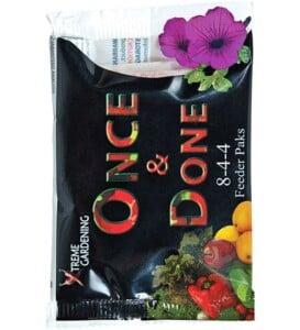 Once & Done Feeder Packs can be used on anything, from tomatoes to squash, zucchinis to peppers, and basil to oregano. Available in packages containing THREEย slow-release packs.