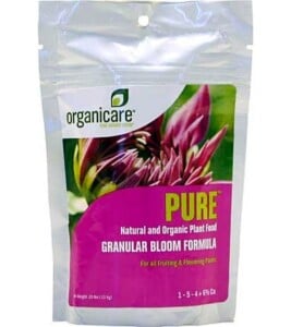 Mix 1/2 to 1 oz. per gallon of growing media. For best results, use with Organicare Humega and Huvega every watering at 2-3 tsp. each per 4-liters of water. Reapply every 2 weeks by turning 1/2 to 1 oz. Pure Bloom per gallon of grow media into the top 1-3″ of soil.
