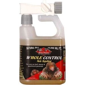 Containing natural castor oil, Dr. T’s Whole Control Mole Repellent helps to rid these destructive pests from lawns, gardens and ornamental turf areas. No mixing required, simply attach to your garden hose and spray all areas which show signs of mole activity. This patented formula is not destroyed by rain and will remain effective for a minimum of one month.