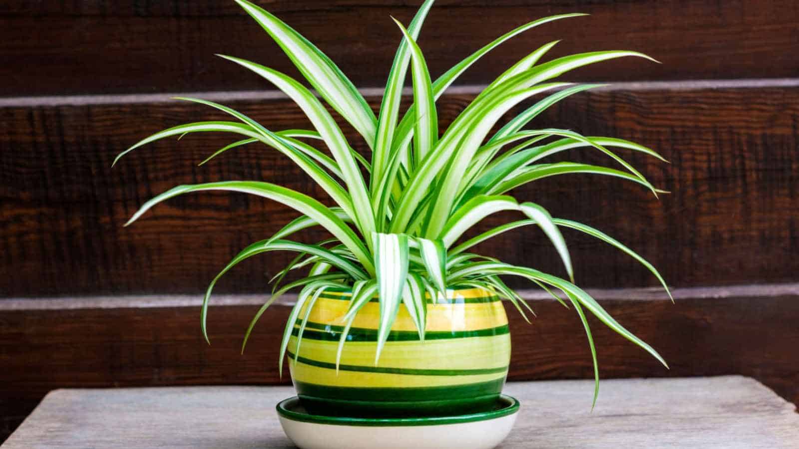 Spider plant is an ideal choice for beginners in indoor plants. These houseplants prefer indirect sunlight, as direct sunlight can scorch their leaves.